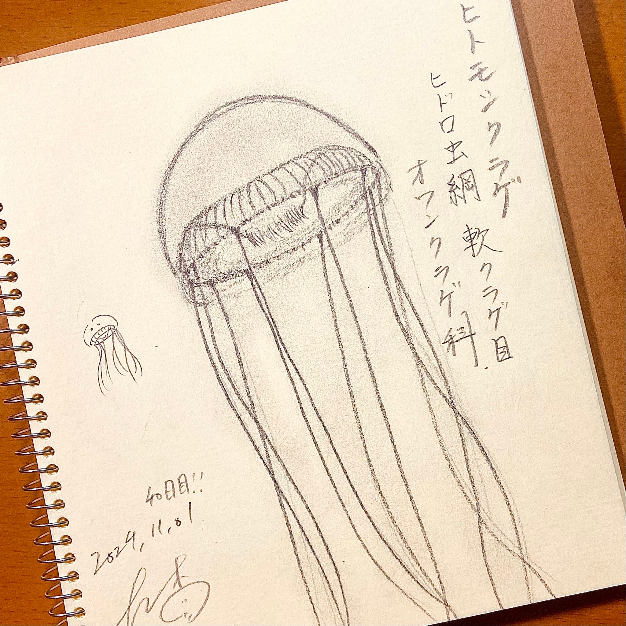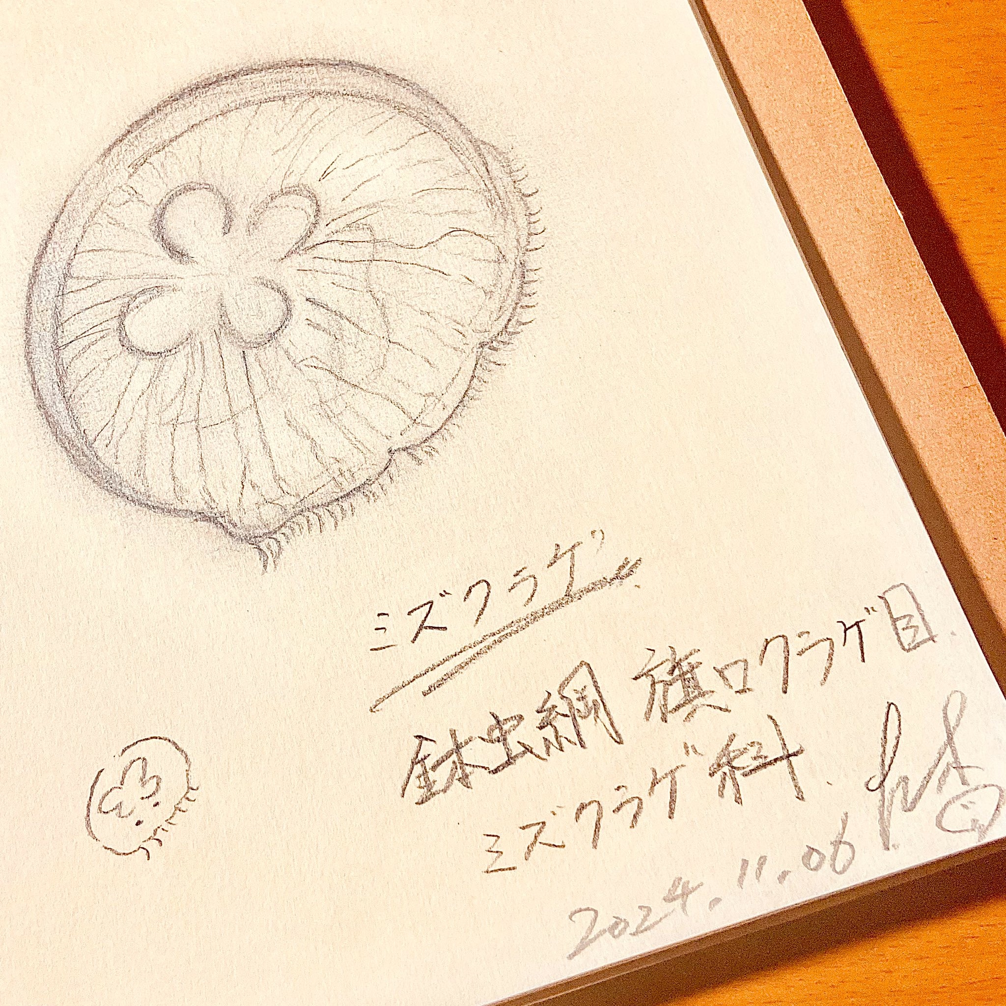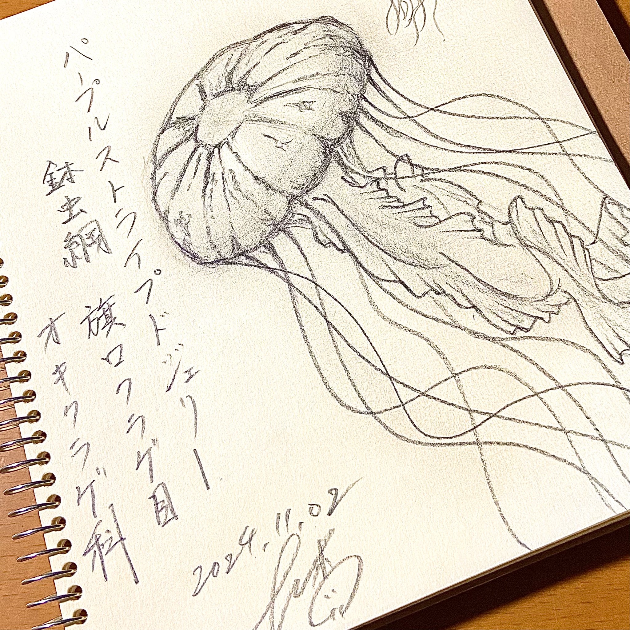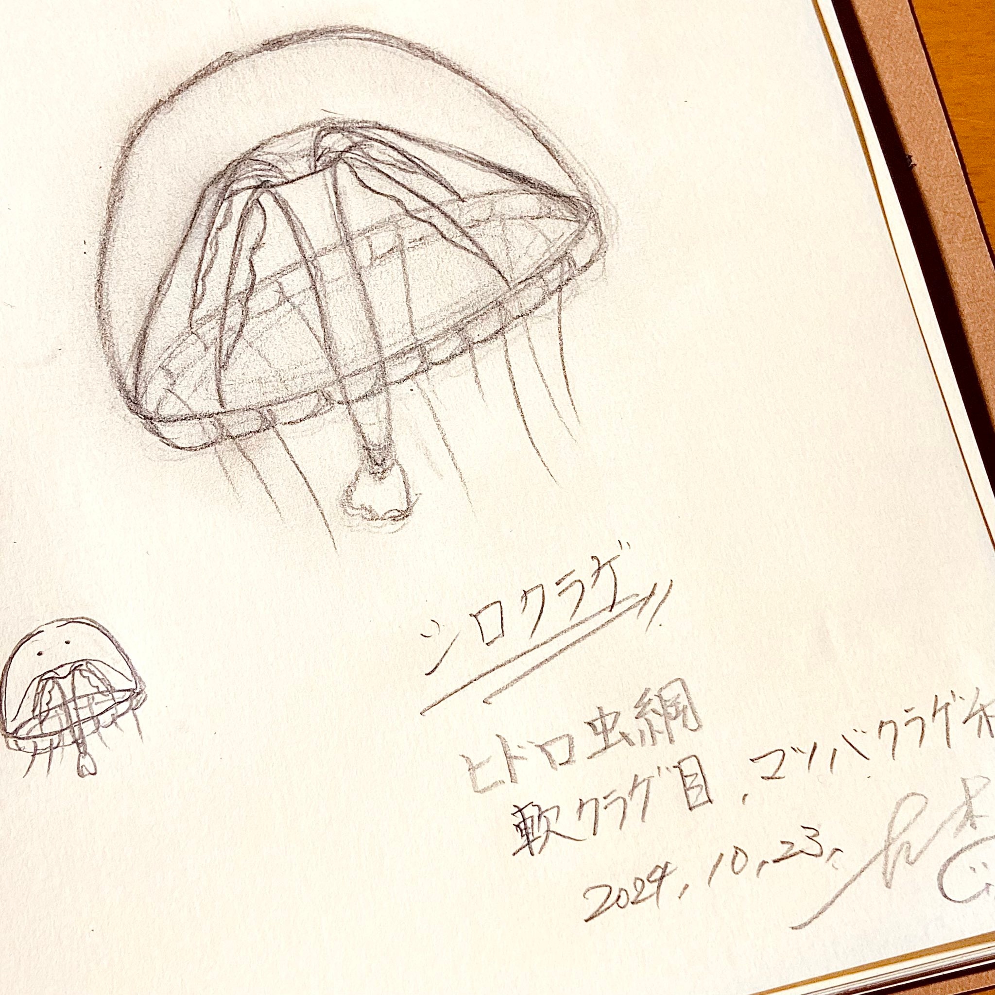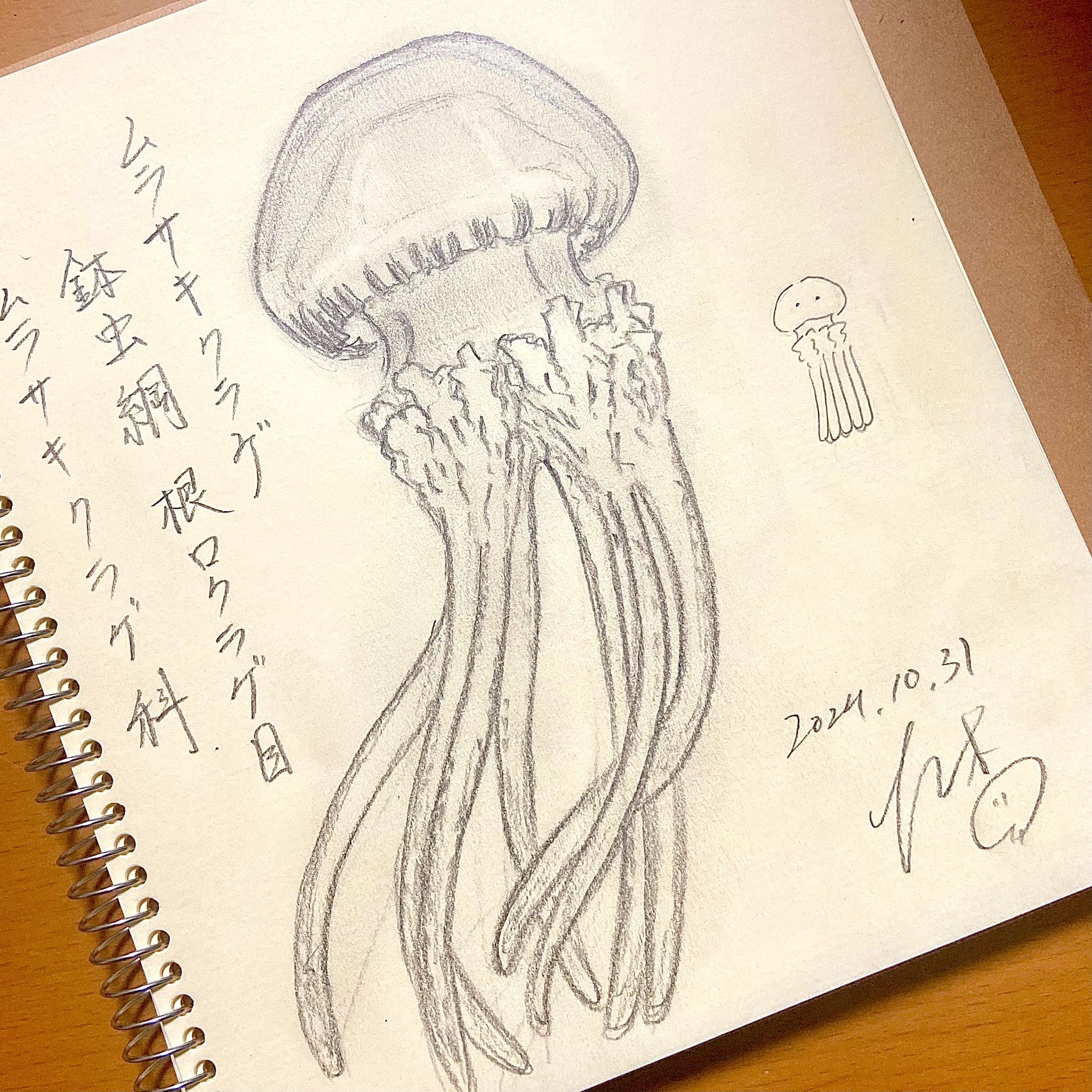 加茂水族館の館長さんが「クラゲはミズクラゲに始まりミズクラゲに終わる」と仰っていました。それくらい基本となるクラゲなのかなと思うので、よりリアルに描けるようになりたいです!