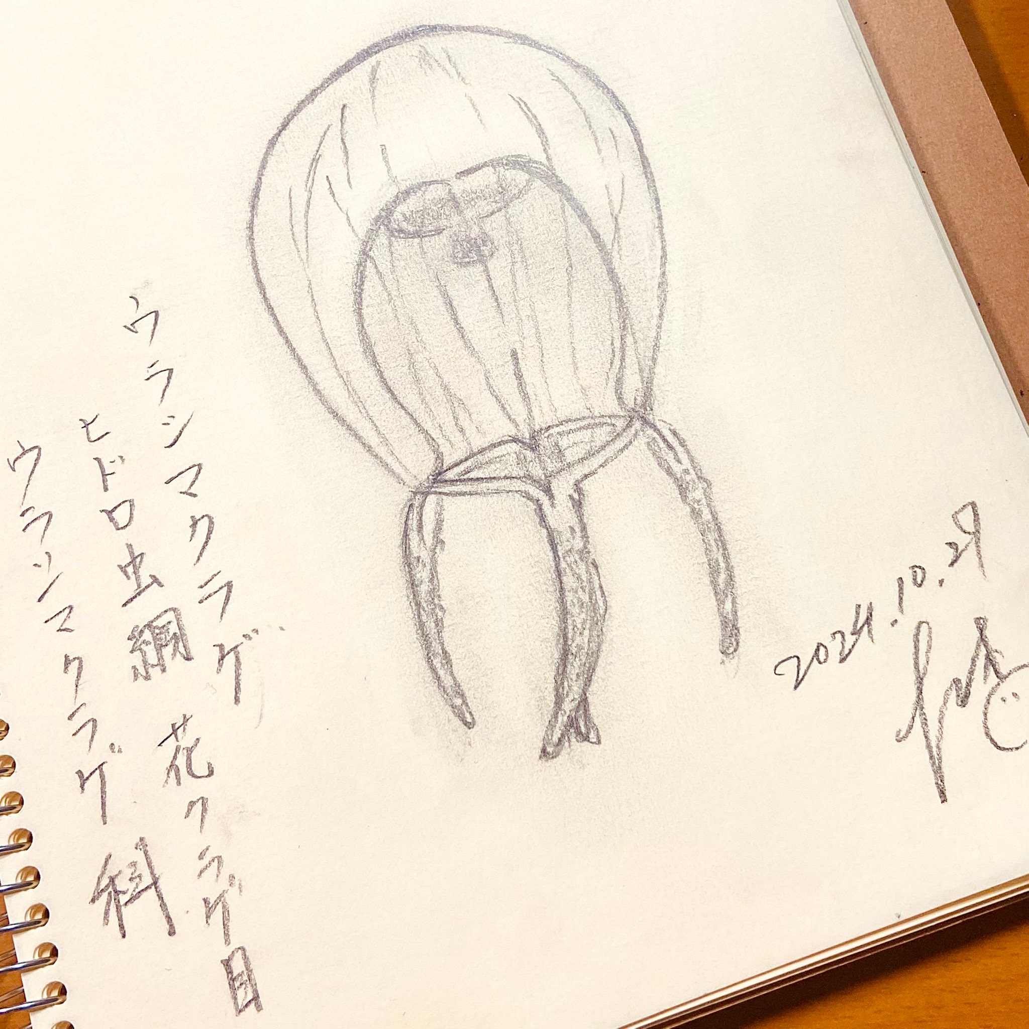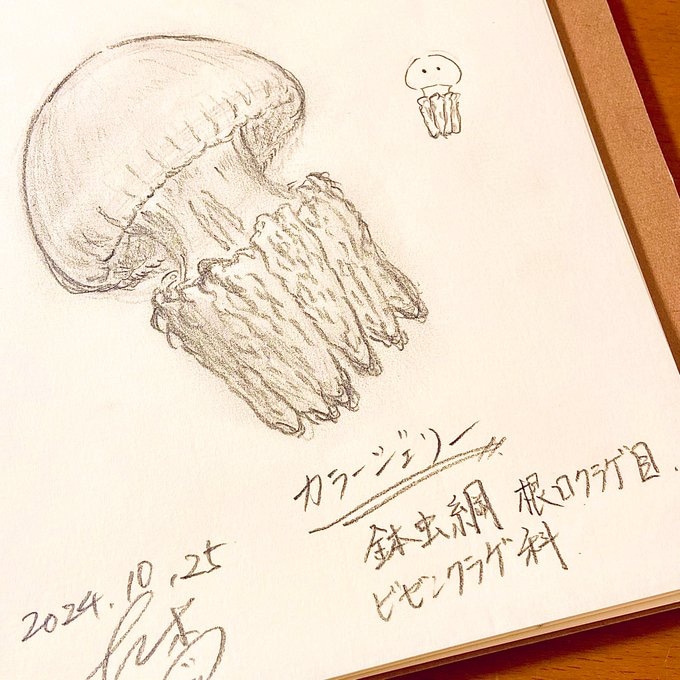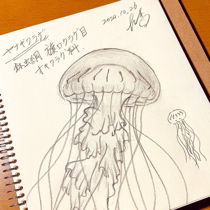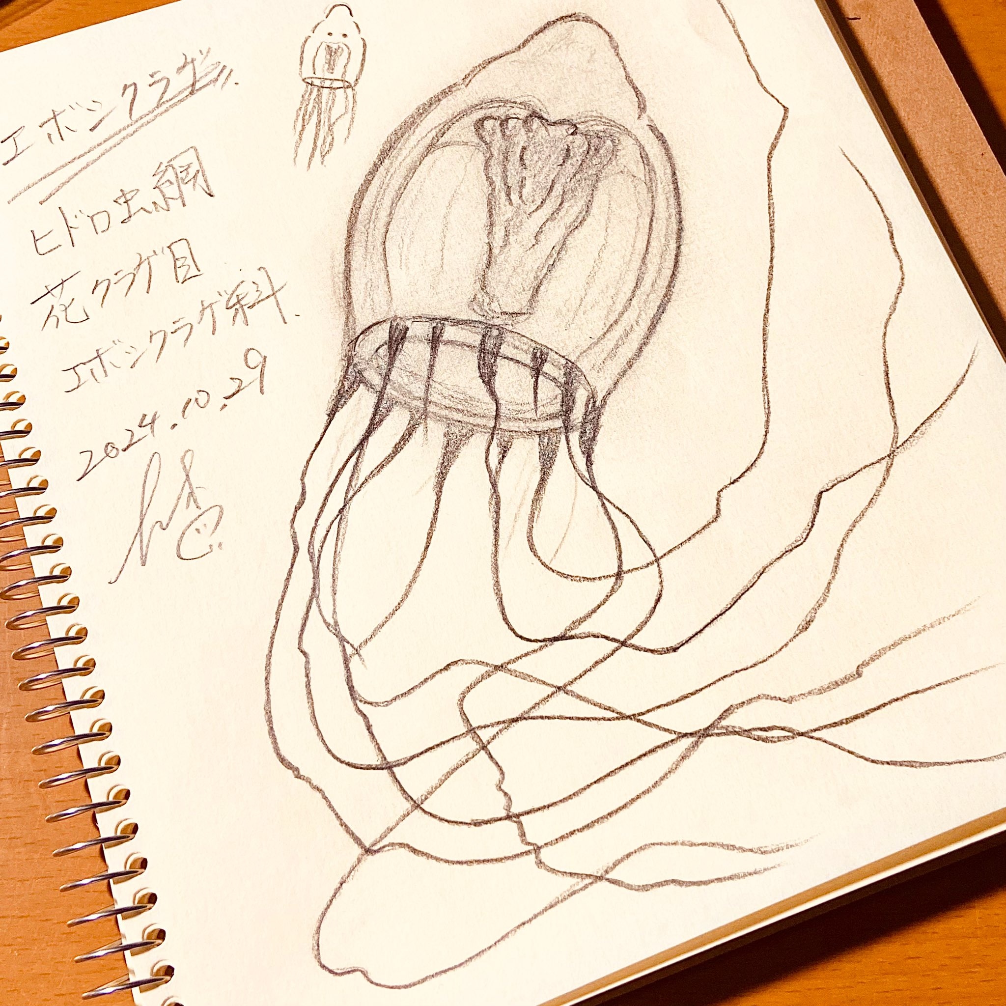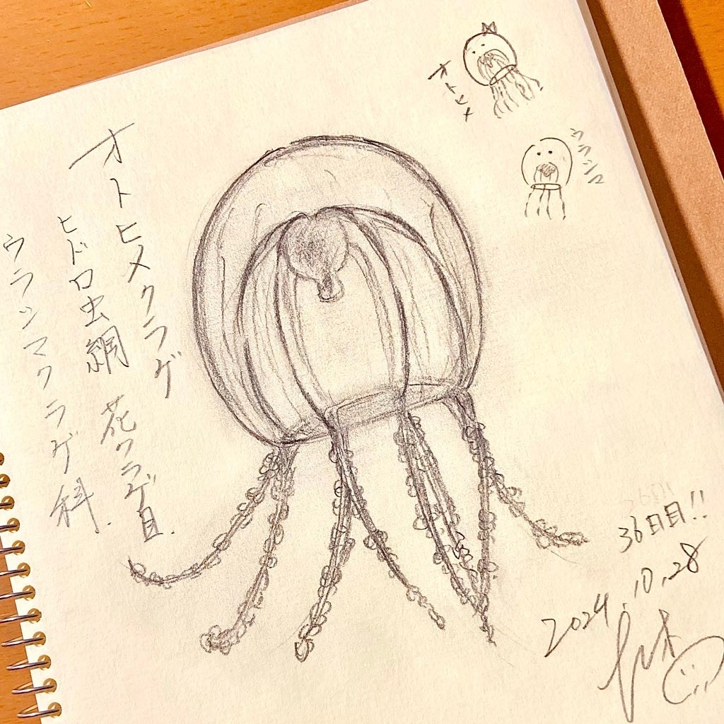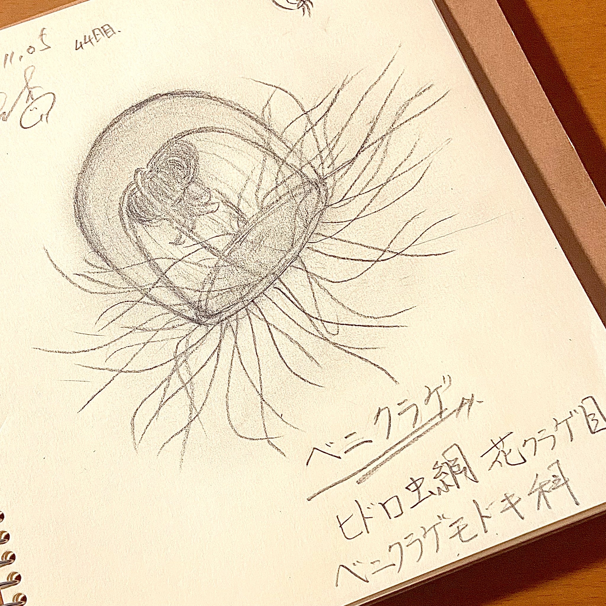 加茂水族館の館長さんが「クラゲはミズクラゲに始まりミズクラゲに終わる」と仰っていました。それくらい基本となるクラゲなのかなと思うので、よりリアルに描けるようになりたいです!