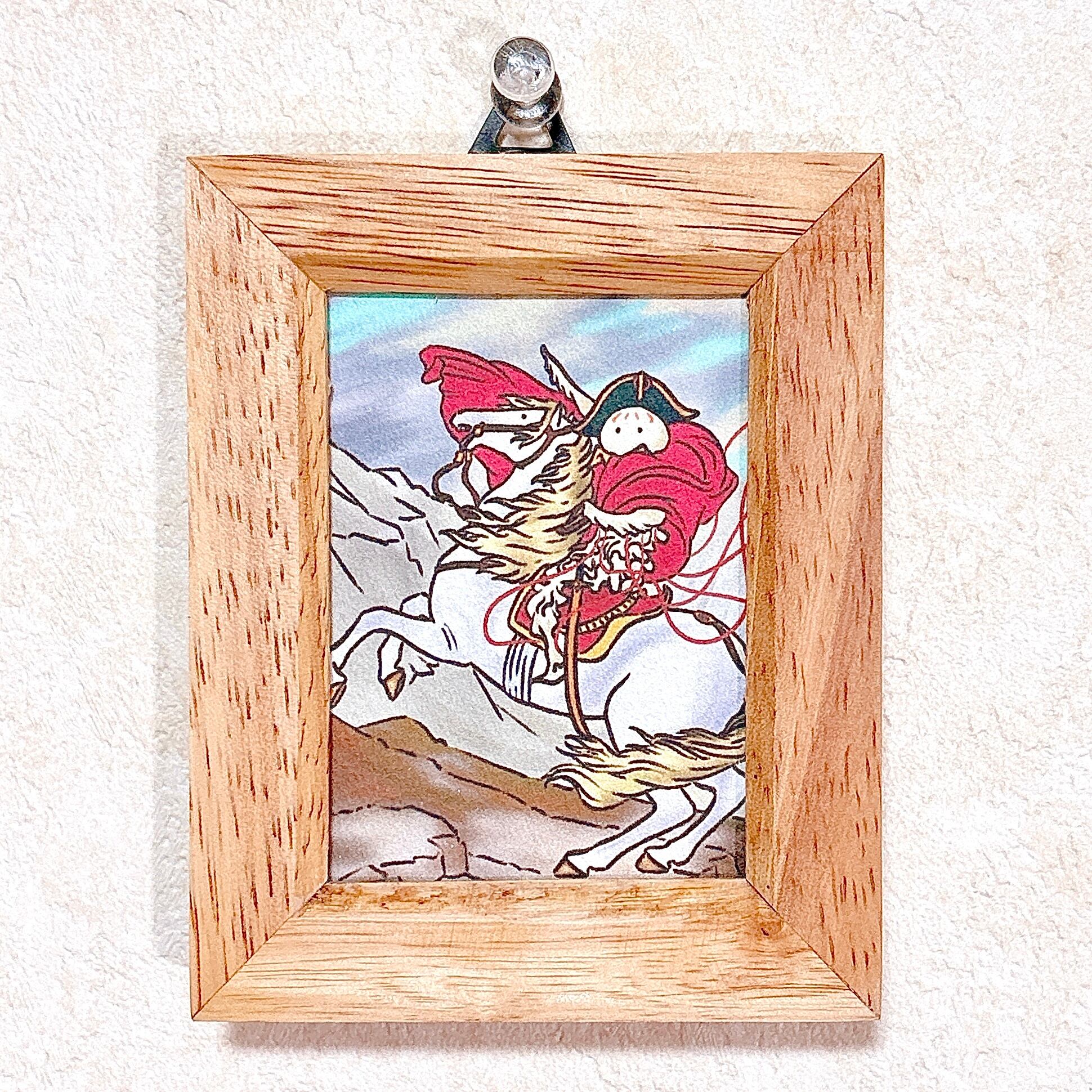 ミニ額なので、場所を選ばず色々なところにちょこっと飾ることができます。画像2枚目のように机に置いたり、画像3枚目のように壁に飾ったりなど、お家のインテリアとしてお使いいただけます。